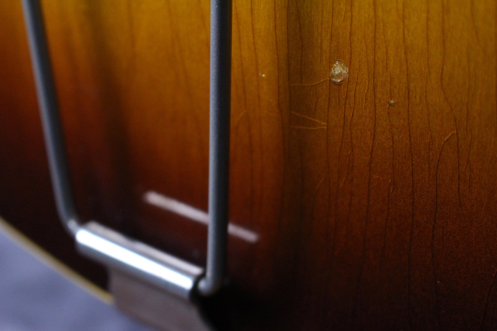 Cosmetics: This guitar is in very good shape. It has light surface scratches on the body. The back of the neck is clean, and the frets show minimal wear. There is a repair to the output jack area that has been repaired and is stable. Overall, this guitar plays very well and sounds fantastic.