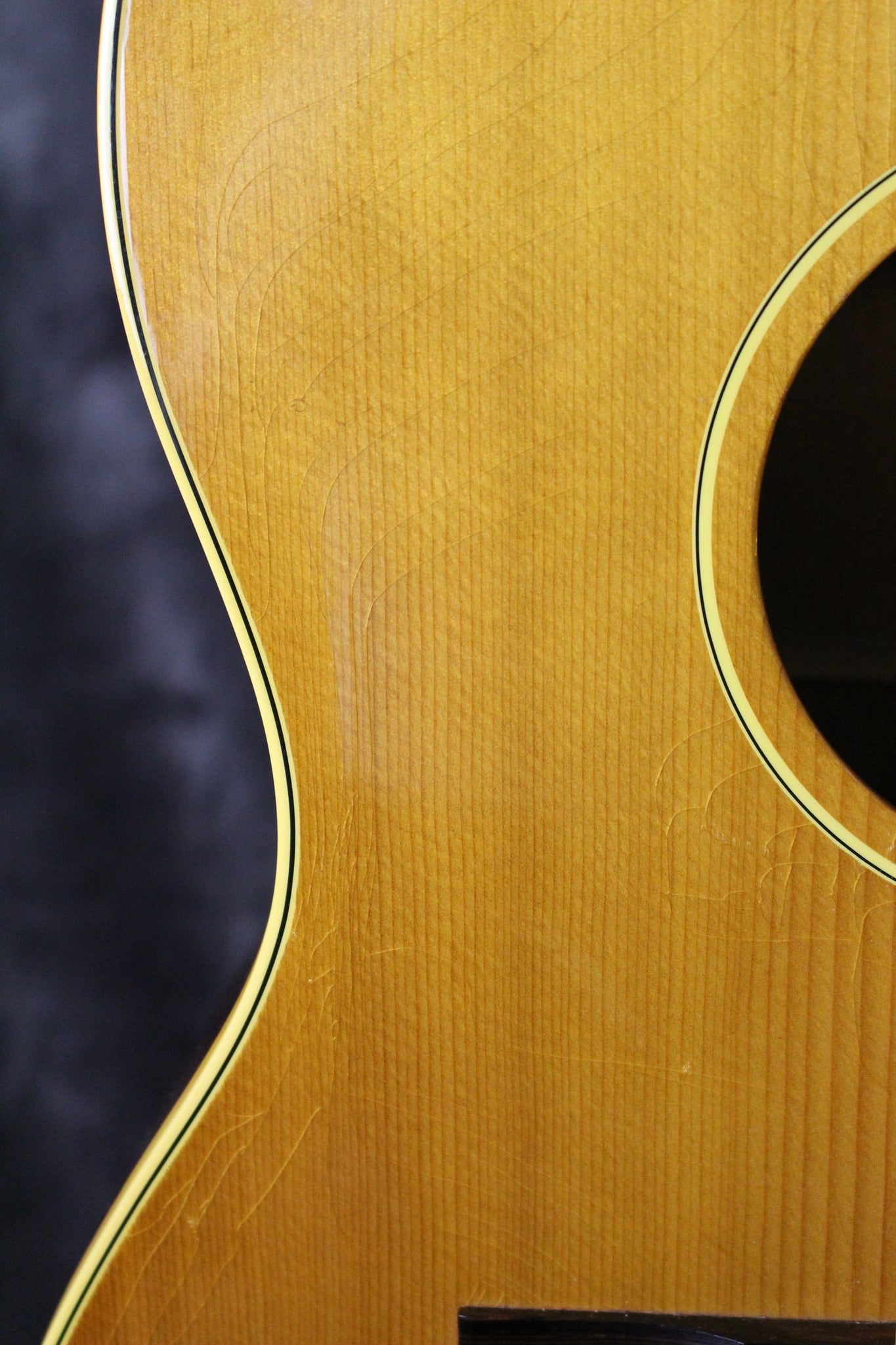Cosmetics: This guitar is in very good condition. It has light surface scratches on the top and back of the body. This guitar has beautiful finish checking on the instrument consistant with age. The back of the neck is clean, and the frets show minimal wear. Overall, this guitar plays very well and sounds fantastic.