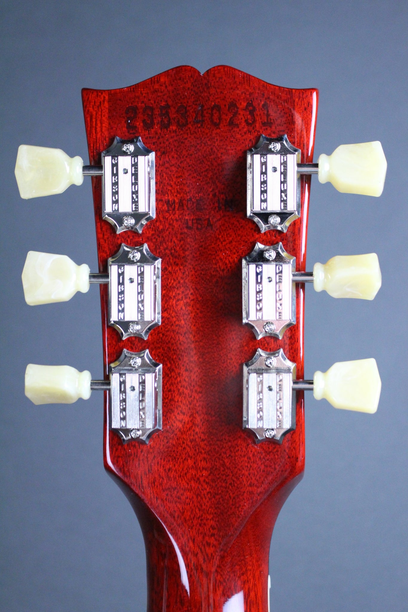 Pickups/Hardware: Gibson P-90 DC soapbar pickups, Gibson Deluxe tuning keys, tune-o-matic bridge, master volume and tone knobs for each pickup with 15db boost switch, graphtech nut.