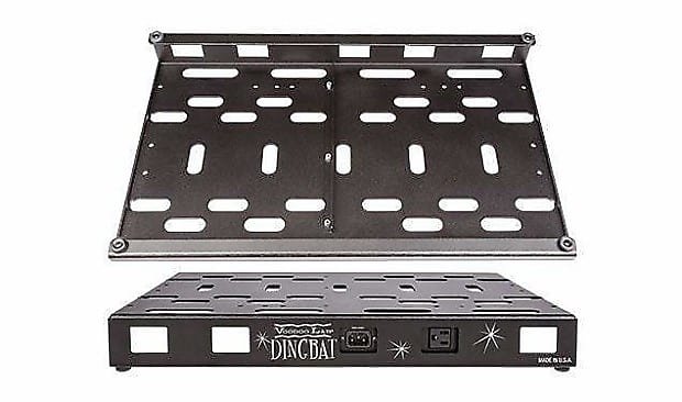 The innovative patent pending design of a Voodoo Lab® Dingbat pedalboard delivers a rugged, lightweight platform for organizing your pedals and keeping cables neatly tucked away and out of view. Crafted from superior American 6061-T6 aircraft-grade aluminum, each pedalboard is made in Sonoma County, California and includes a tour ready gig bag. At 22" x 13 1/2", the medium Dingbat is ideal for assembling a typical size board with room for 6 to 10 effects. Hook-and-loop tape is provided to attach pedals, also zip ties and 4-way tie mounts to secure cabling underneath.