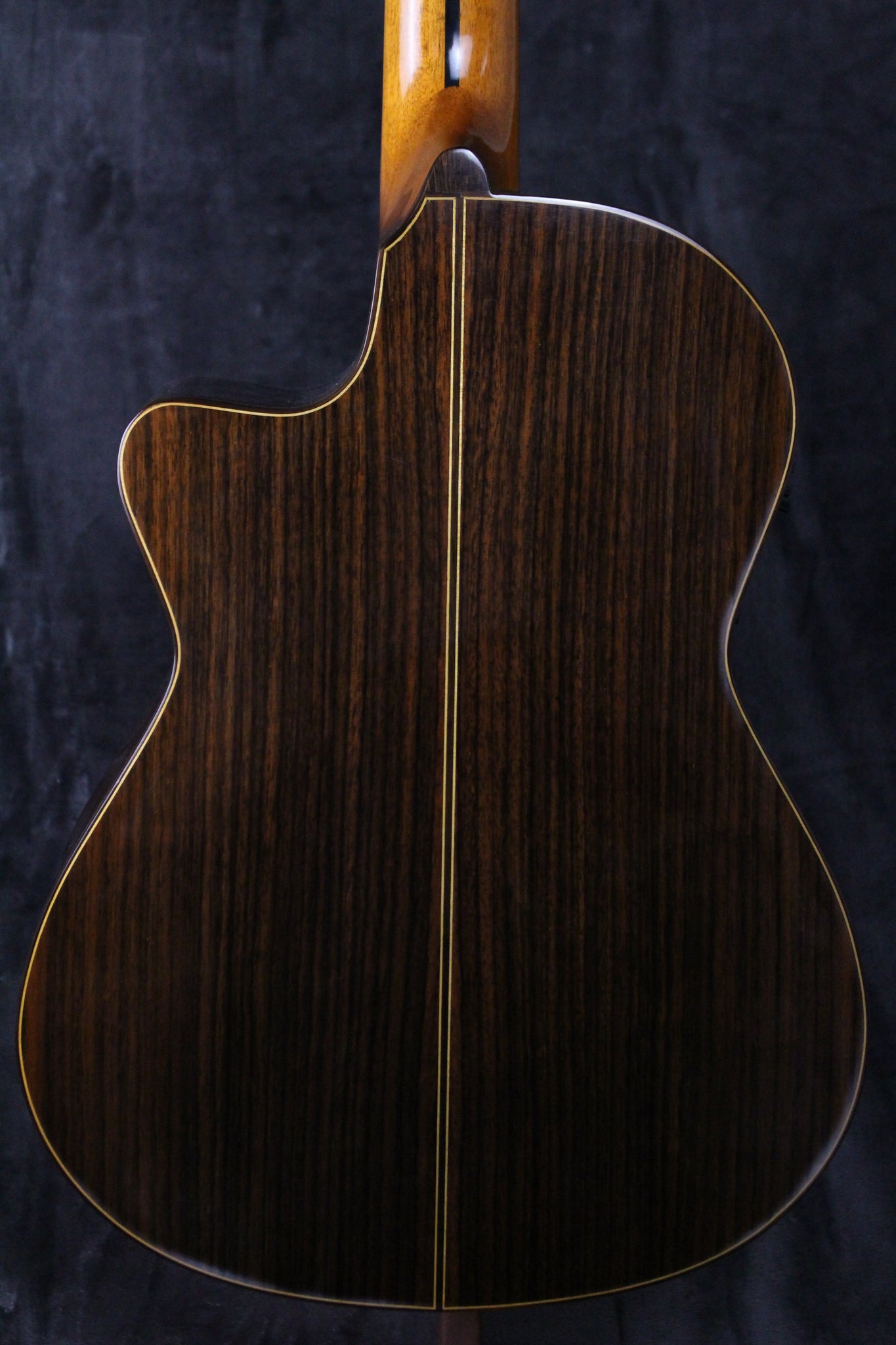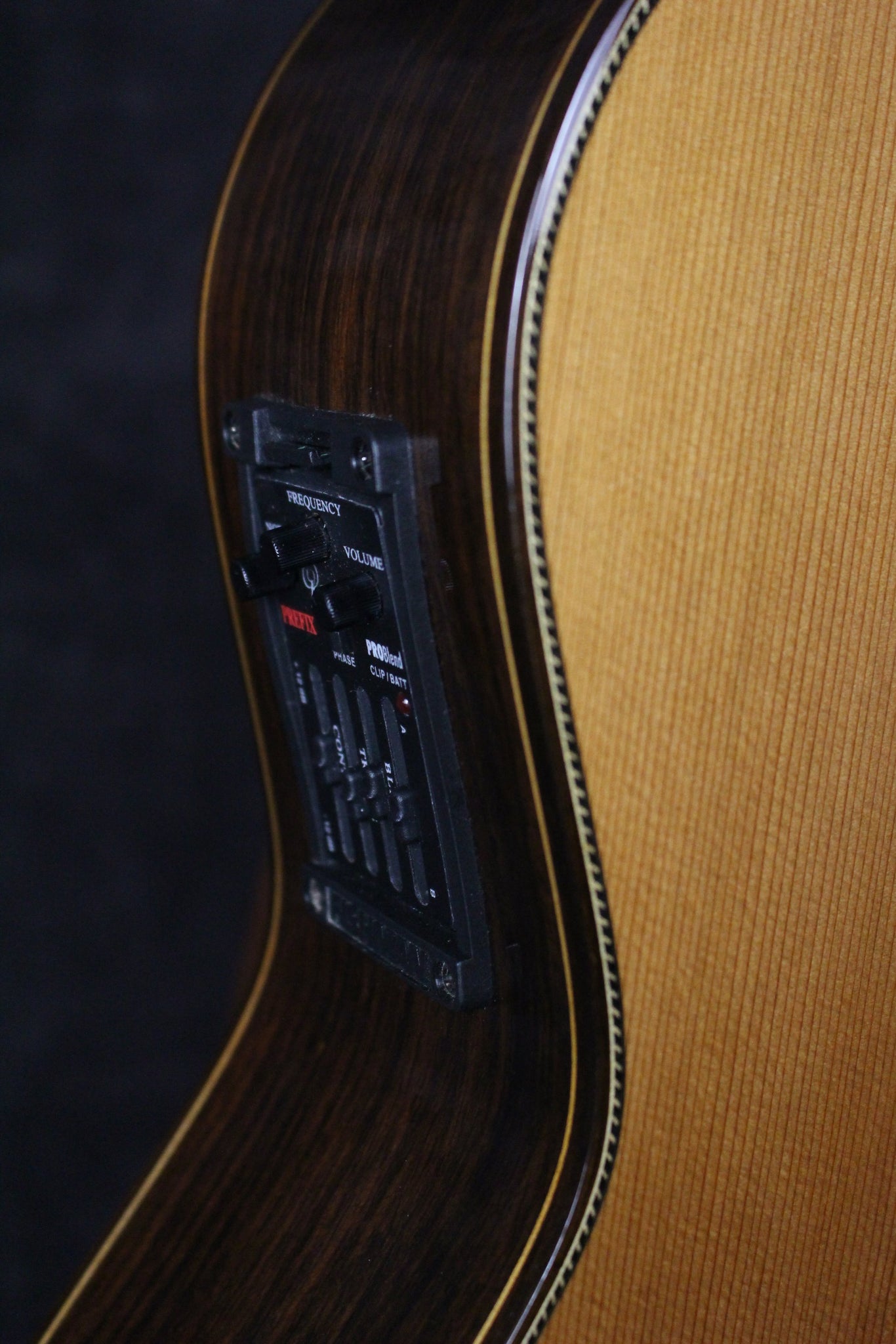 Body: Cedar top, Indian Rosewood back and sides, Indian Rosewood binding, Polyurethane finish, 65mm soundhole, venetian cutaway.