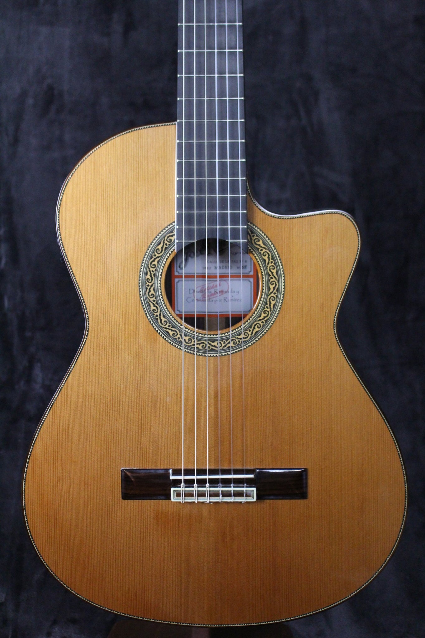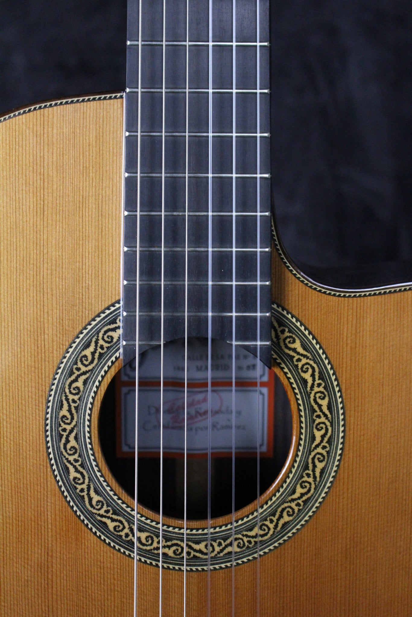 This José Ramírez 4N CWE is a wonderful, modern classical from one of the most renowned builders in the world. With all solid construction and a natural sounding pickup, this guitar sounds as good plugged in as it does acoustically. Ramírez designed this instrument to be versatile no matter the genre: classical repertoire sounds great, as does jazz, bossa, and pop. It’s an incredibly responsive guitar, even when played without fingernails, and the balance between bass and treble leaves nothing to be desired.