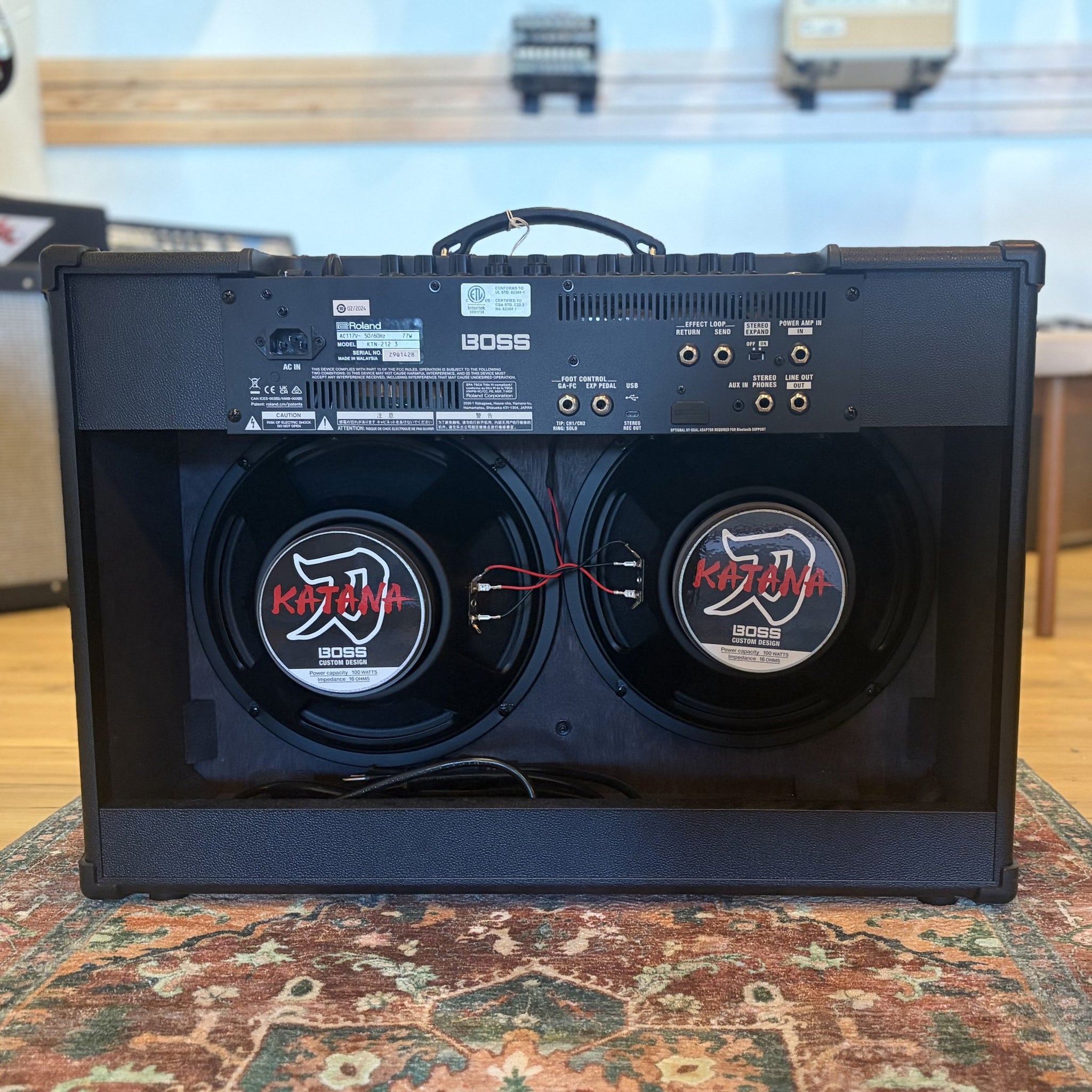 This Katana 3 has been tested and works great. Coming in at 100 watts of solid state power, this 2x12 amp is perfect for beginners and pros alike. Lightweight and versatile, this amp has a plethora of built in effects, selectable on the amps face or by an external foot switch (not included).