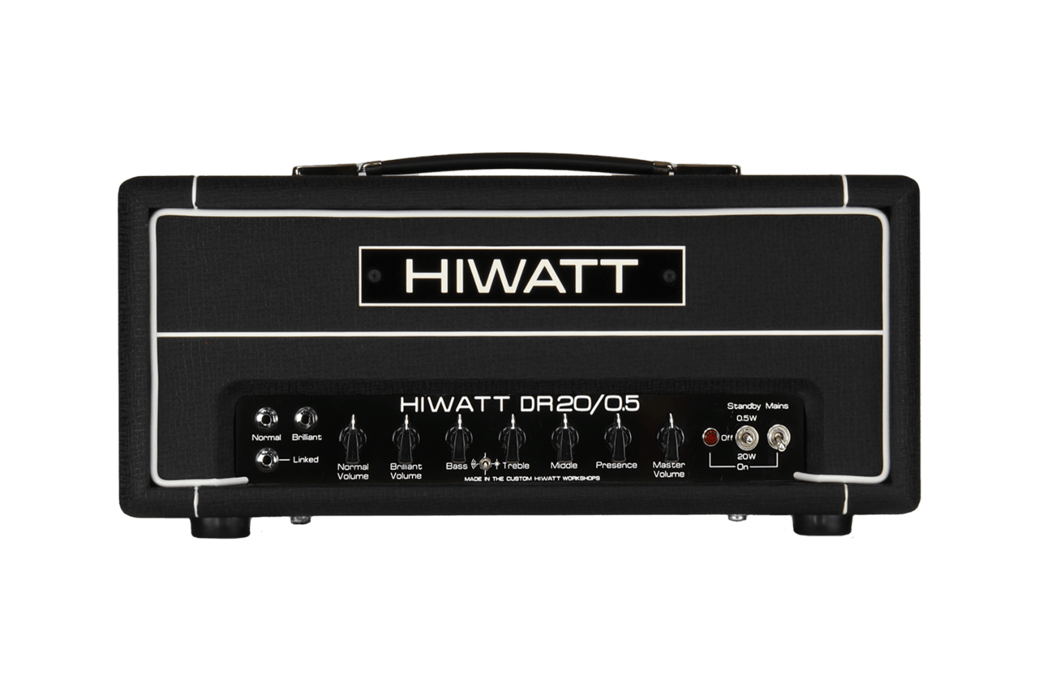 The legendary Hiwatt preamp circuit and tonestack found in the DR103/504 feeding a 20W (switchable to 0.5W) output section offers classic Hiwatt Headroom, clarity, instantaneous response, sonic depth, and detail, with breakup at recording and club volumes (switch to 0.5W in the greenroom).