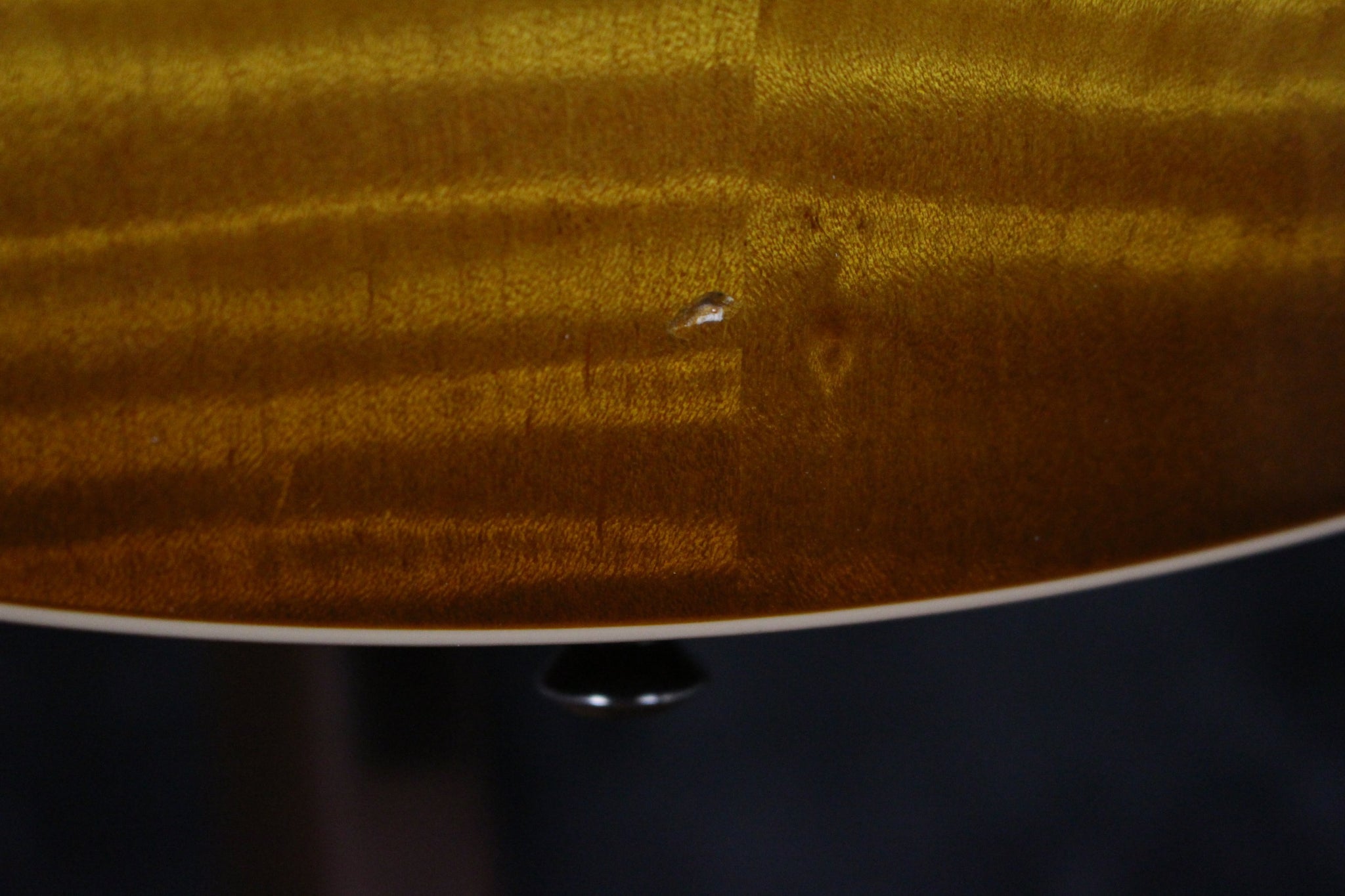 Cosmetics: This guitar is in very good condition. It has light surface scratches on the top and back of the body. There is one ding to note near the center seam on the top. The back of the neck is clean, and the frets show minimal wear. Overall, this guitar plays very well and sounds fantastic.