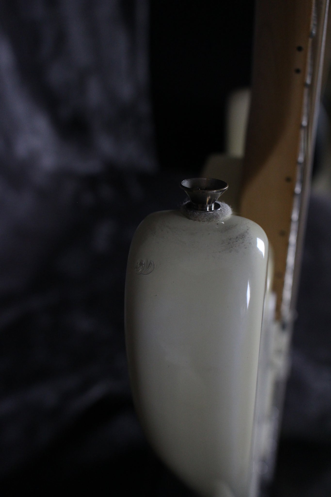 Neck: Maple with a Maple fingerboard, 25.5” scale length, 1 9/16” nut width, 21 frets, black dot inlays.