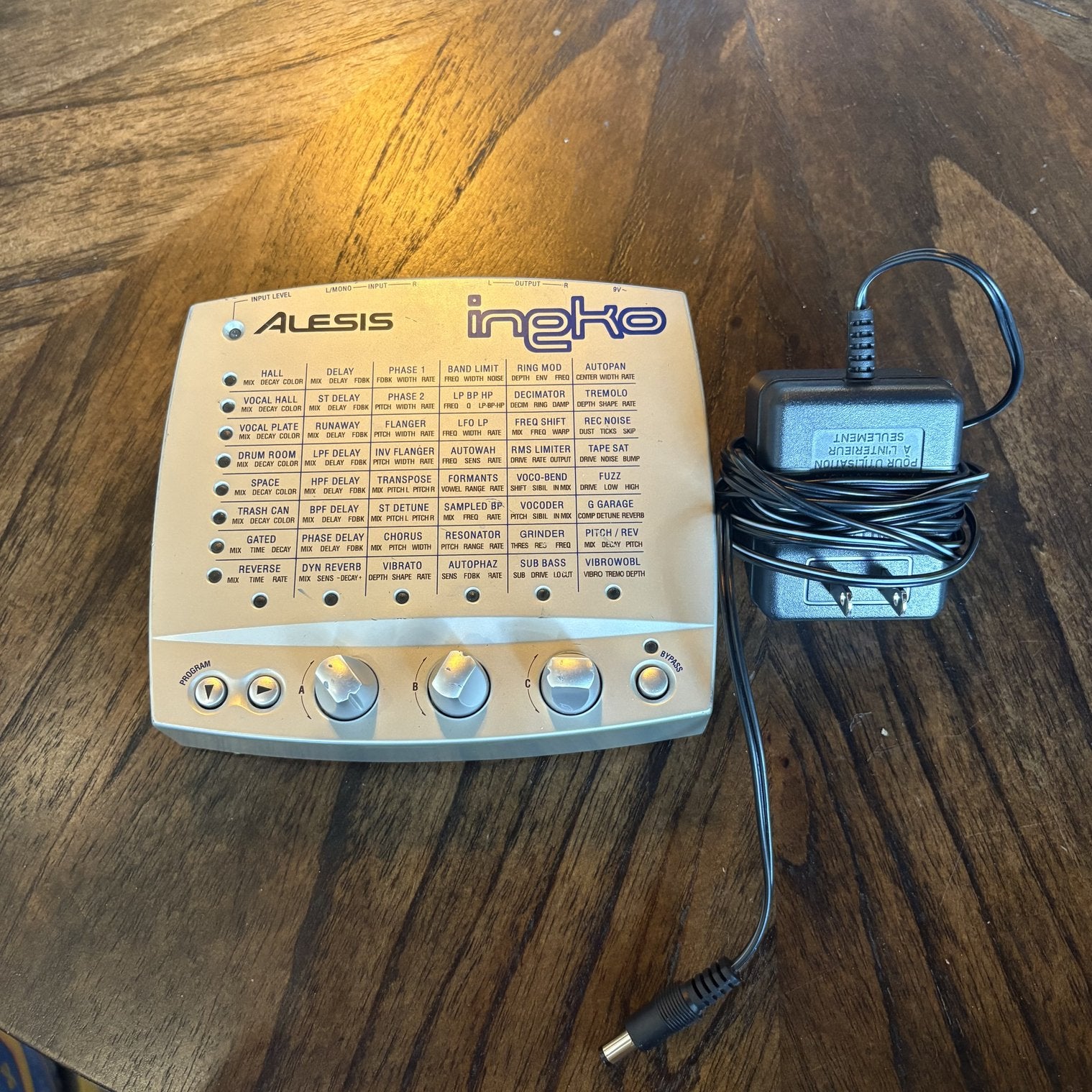 This is a used and tested Alesis INEKO and it ships with the power adapter - no box included