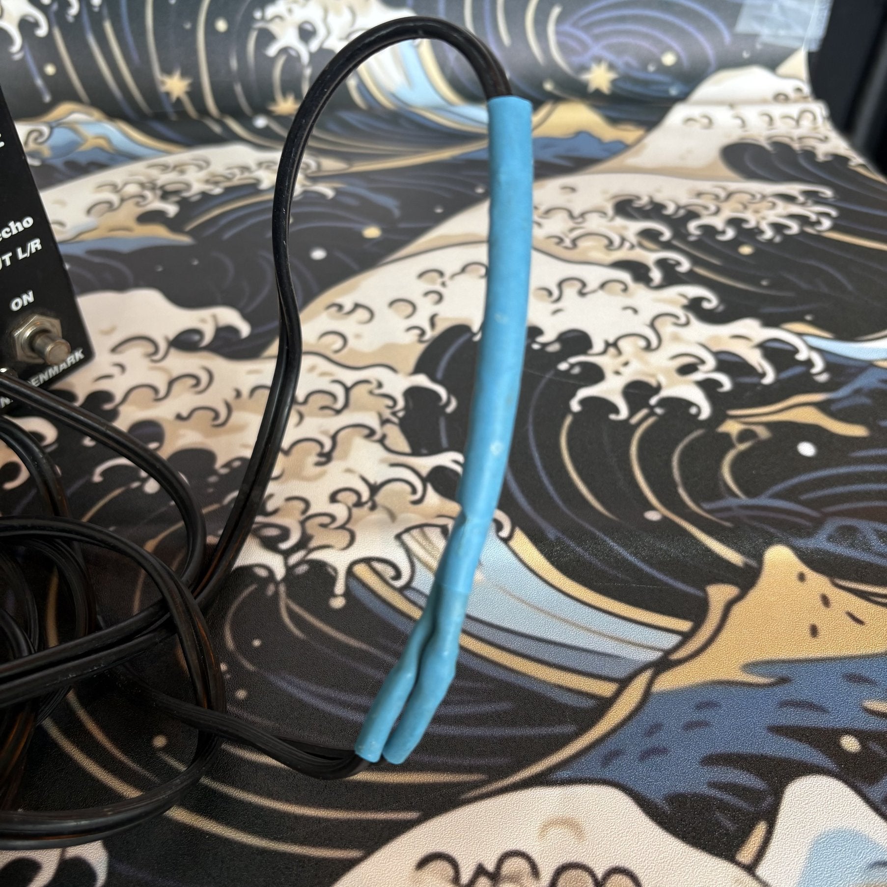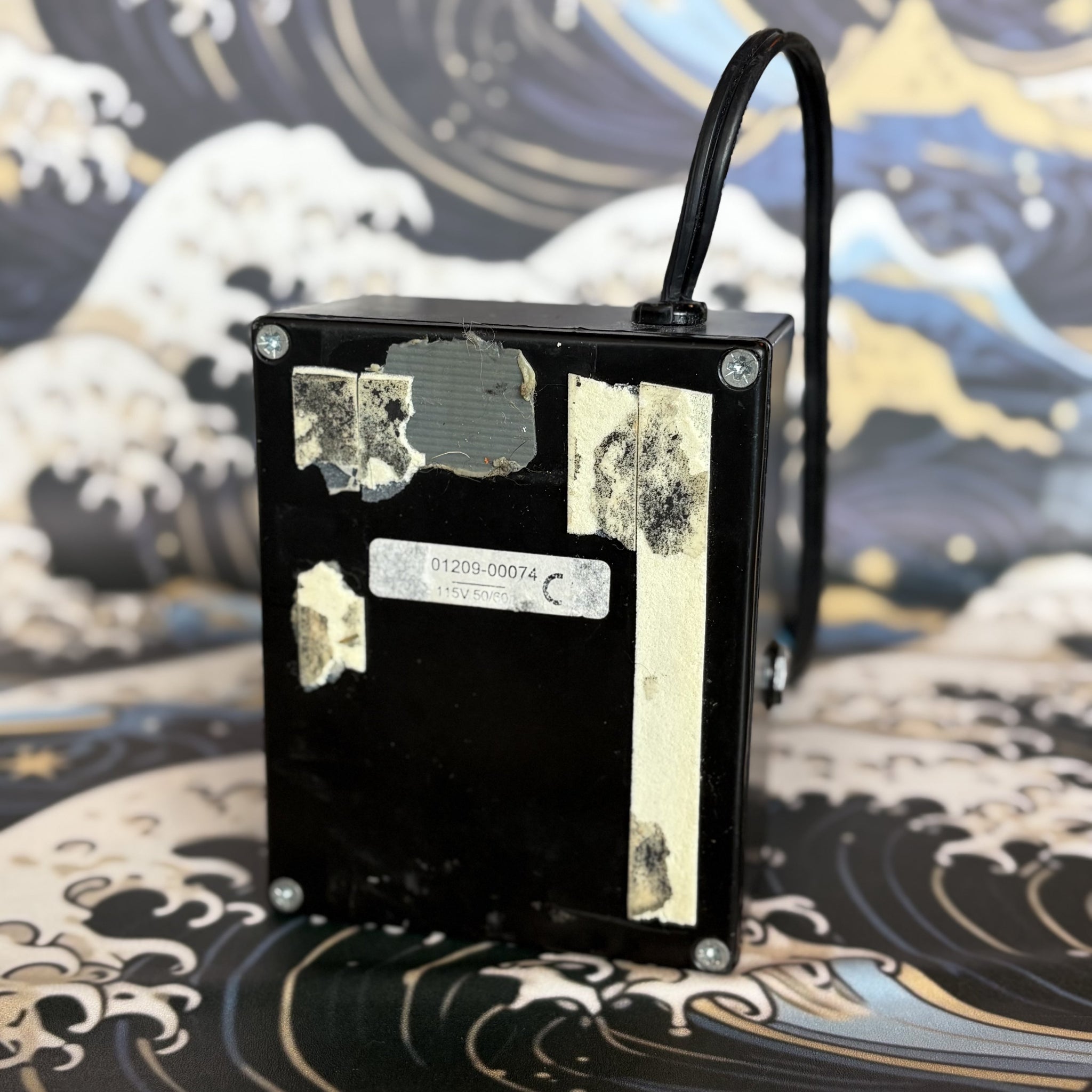 This pedal has been tested and works great. The hard-wired power cable has been repaired with what seems to be shrink wrap tubing (see photo #3). The original box is not included but this item will be professionally packed for shipping.