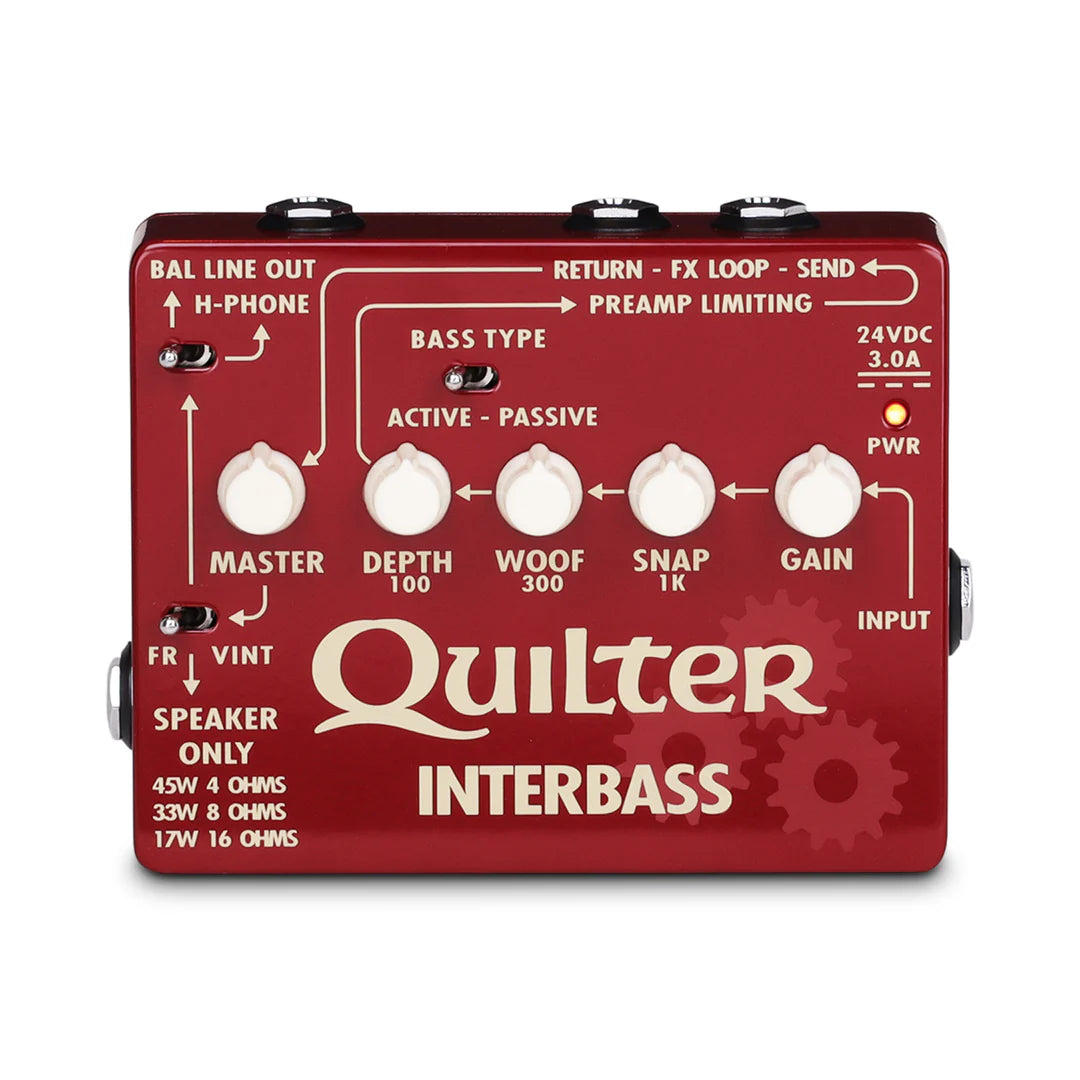 Introducing the Quilter InterBass, the ultimate tool for today’s bass player who faces the challenges of performing on silent stages and achieving high-quality recordings at home without disturbing the peace. The InterBass is a pedal-sized powerhouse, combining the best features of the Bass Block signal path with Quilter’s innovative direct-out connectivity setup.