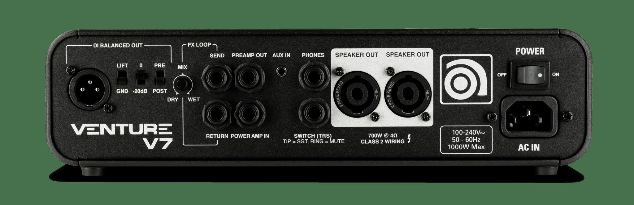 The Venture V7 delivers 700 watts via its Class D power section—more than enough power to drive any of the Venture Series speaker cabinets or practically any other cab bassists may encounter on their travels.