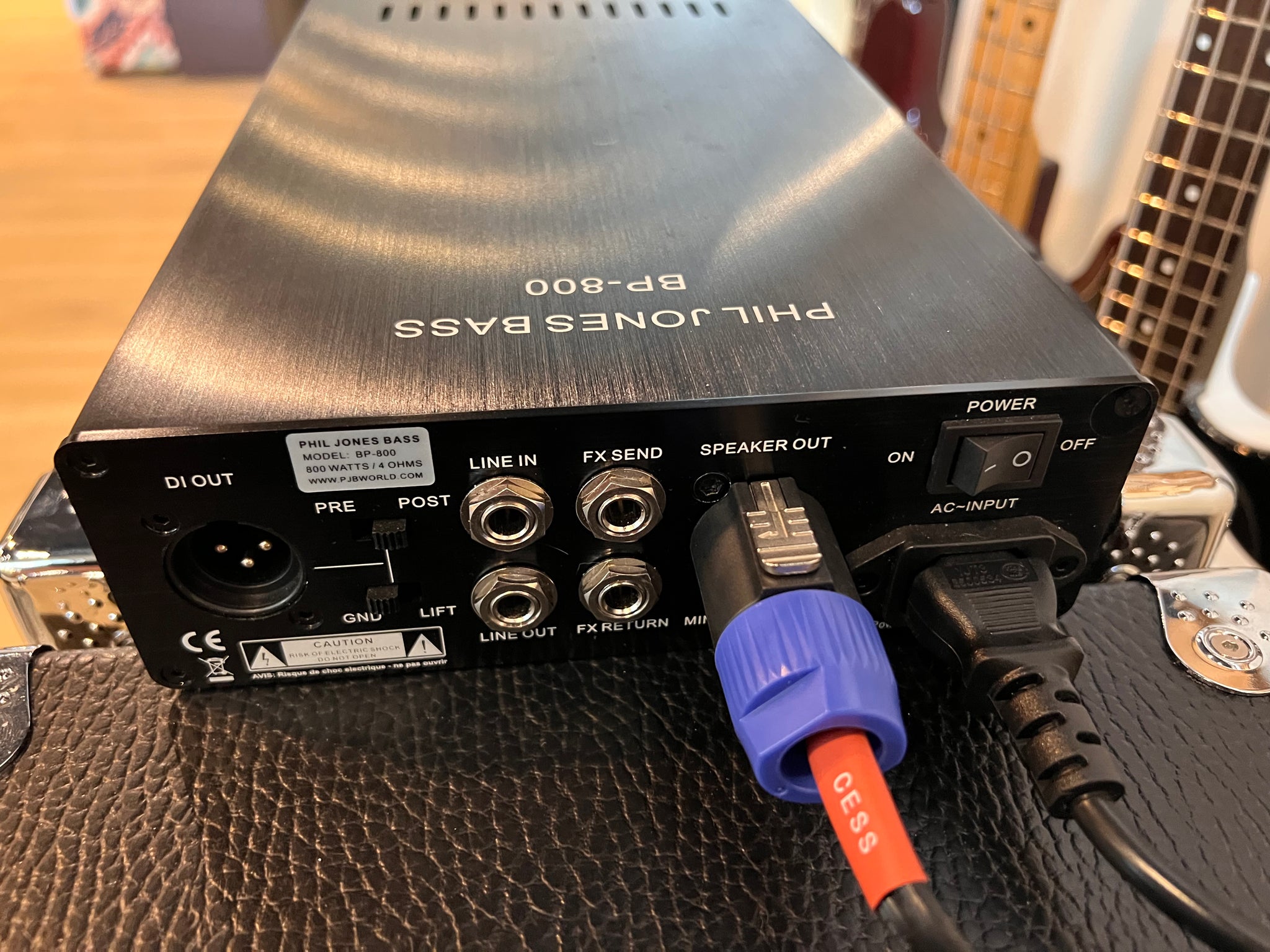 Small and lightweight just got more powerful with PJB’s BP-800 bass amplifier. The BP-800 is a high-power, high-performance, no-compromise compact amplifier that delivers the most bass for the buck. The BP800 features a Class A preamp with the popular PJB 5-band EQ. Although it weighs only 5.7 lbs and is 7.5” wide the BP-800 is built with the ruggedness and precision needed to withstand all the rigors of live performance and the road. The appealing blue front panel is a quarter inch thick and CNC machined, while the chassis is built from thick aluminum extrusion making it incredibly strong. All control knobs are PJB design solid aluminum billet for a high end look and feel. The BP-800 will work on any AC voltage from 100- 240 volts AC, enabling it to conveniently travel worldwide without having to switch to local AC supply voltages. The power output is 450 watts into 8 Ohms, and 800 watts into 4 ohms (maximum load). The dimensions are 7.5” wide x 2.5” high x 12.5" deep. Other features include Mute /Passive/Active Switch, Headphone out and auxiliary input jacks, Balanced line out with pre/post EQ and ground lift switches, FX send/return Jacks, Pre Amp out and Power amp input jacks and a High-Current Speakon Out.