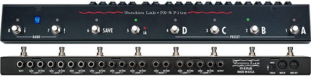 The Voodoo Lab PX-8 PLUS is a programmable 8-loop audio switcher that provides total control over guitar pedalboards. It's basic function as an exceptional quality true-bypass loop strip removes all unused cabling and connections from the signal path for noticeably improved tone and dynamics. Offering single-button access to preset loop combinations, the PX-8 PLUS makes simultaneous switching of multiple effects quick and easy.