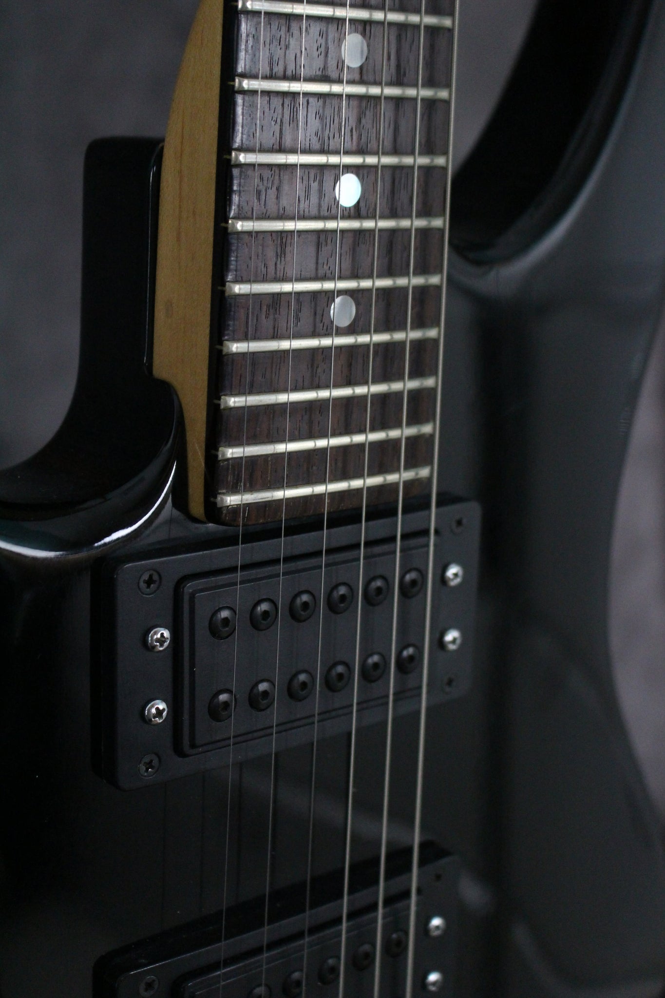 Neck: Maple neck with a Rosewood fingerboard, 24.75” scale length, 1 11/16 ” nut width, 24 frets, Pearl dot inlays.