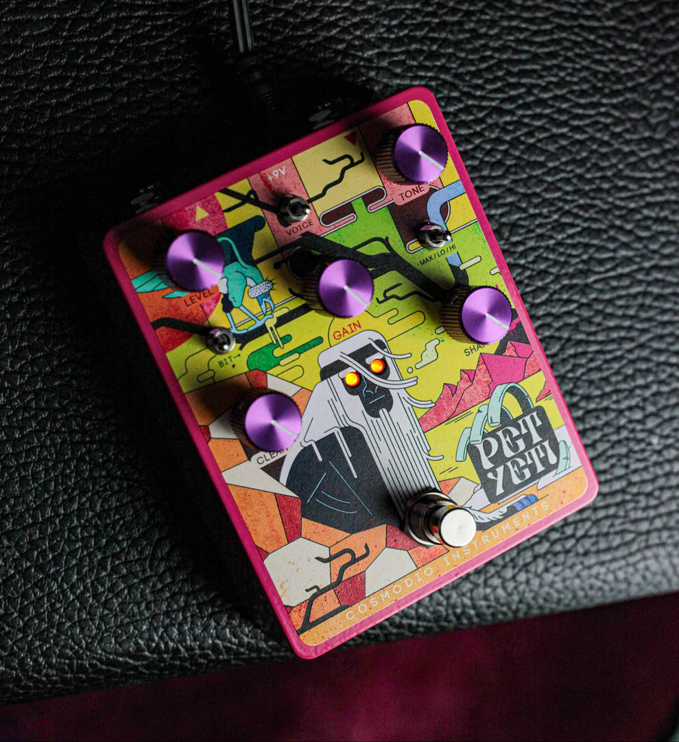 The Pet Yeti analog distortion & fuzz pedal is about harnessing and befriending a monstrous force. It delivers extreme, unbridled and sometimes unusual distortion along with the means to scale and sculpt that energy to suit your music and performance. Its gain range, selectable voicing patterns, and analog bit-crushing can move it from clean boost, through crunch, overdrive and fuzz to glitchy madness. Its parallel clean path and tunable wide-spectrum response make it excel at processing not only guitar, but also bass, drum-machines, synthesizers… anything really. It’s omnivorous!