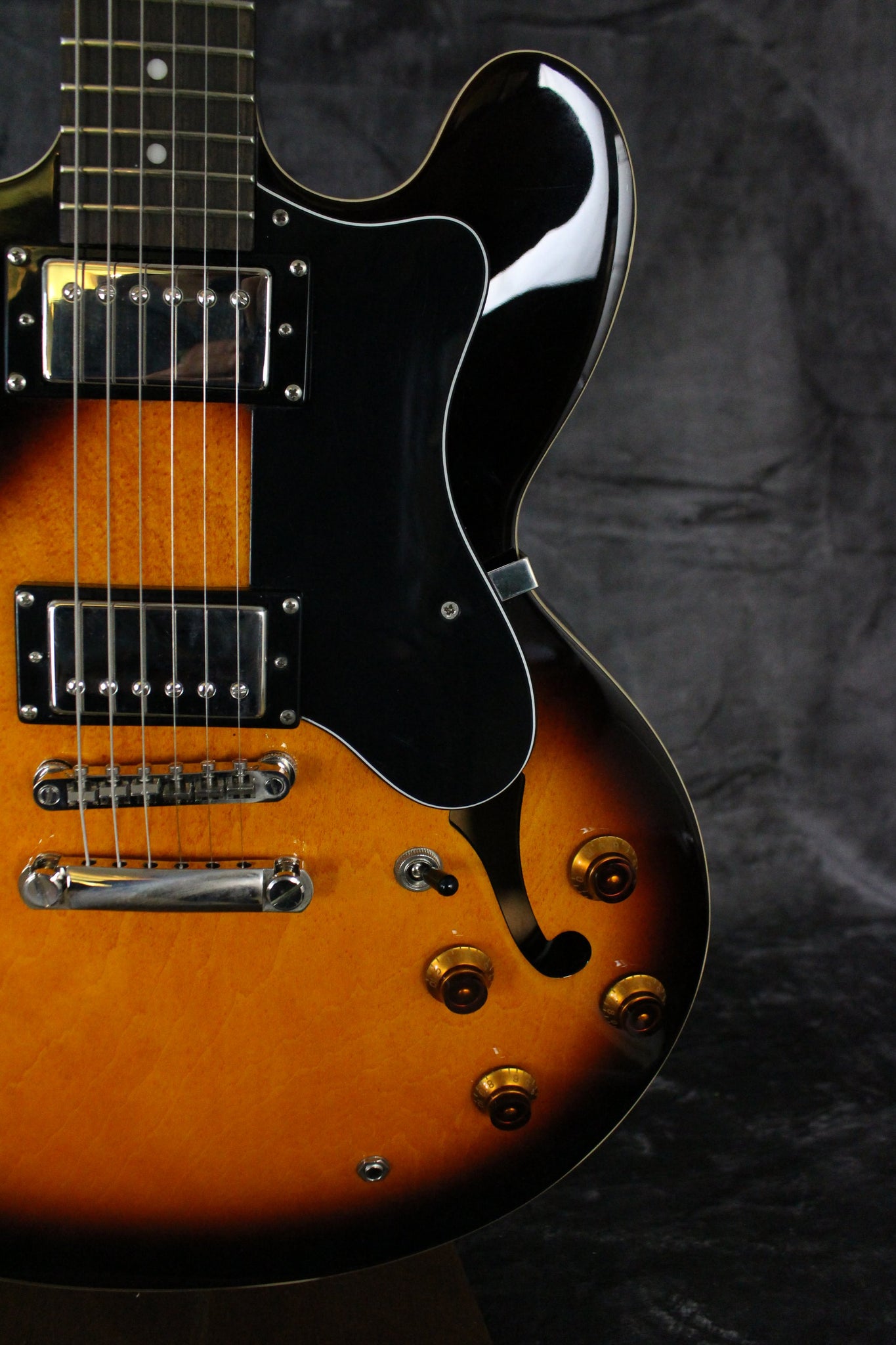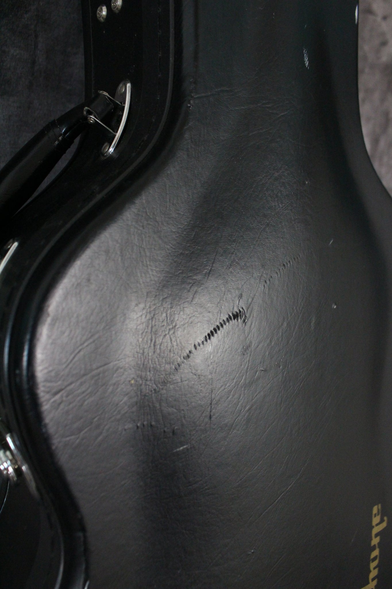Cosmetics: This guitar is in great shape. It has light surface scratches on the body. The back of the neck is clean, and the frets show minimal wear. There is some light tarnishing on the stop tail piece. Overall, this guitar plays very well and sounds fantastic.