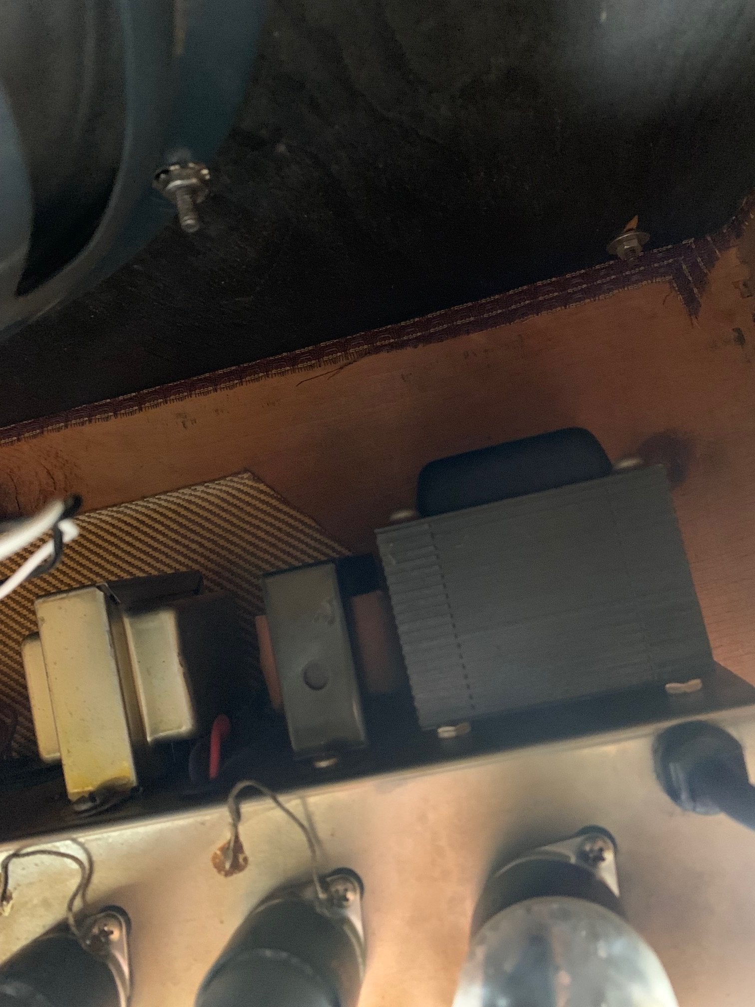 This is a vintage 1959 Fender Tremolux combo amp and it sounds great. This amp has a changed transformer.