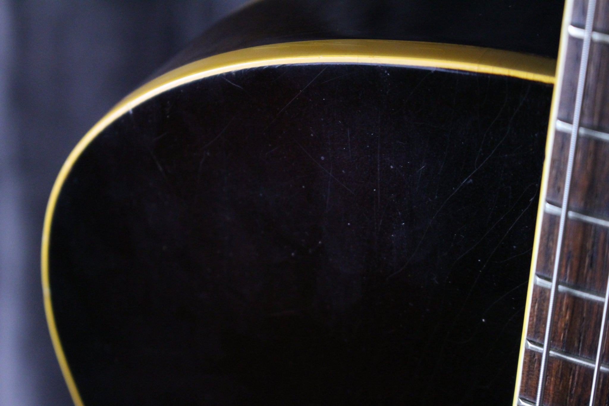 Cosmetics: This guitar is in very good shape. It has light surface scratches on the body. The back of the neck is clean, and the frets show minimal wear. There is a repair to the output jack area that has been repaired and is stable. Overall, this guitar plays very well and sounds fantastic.