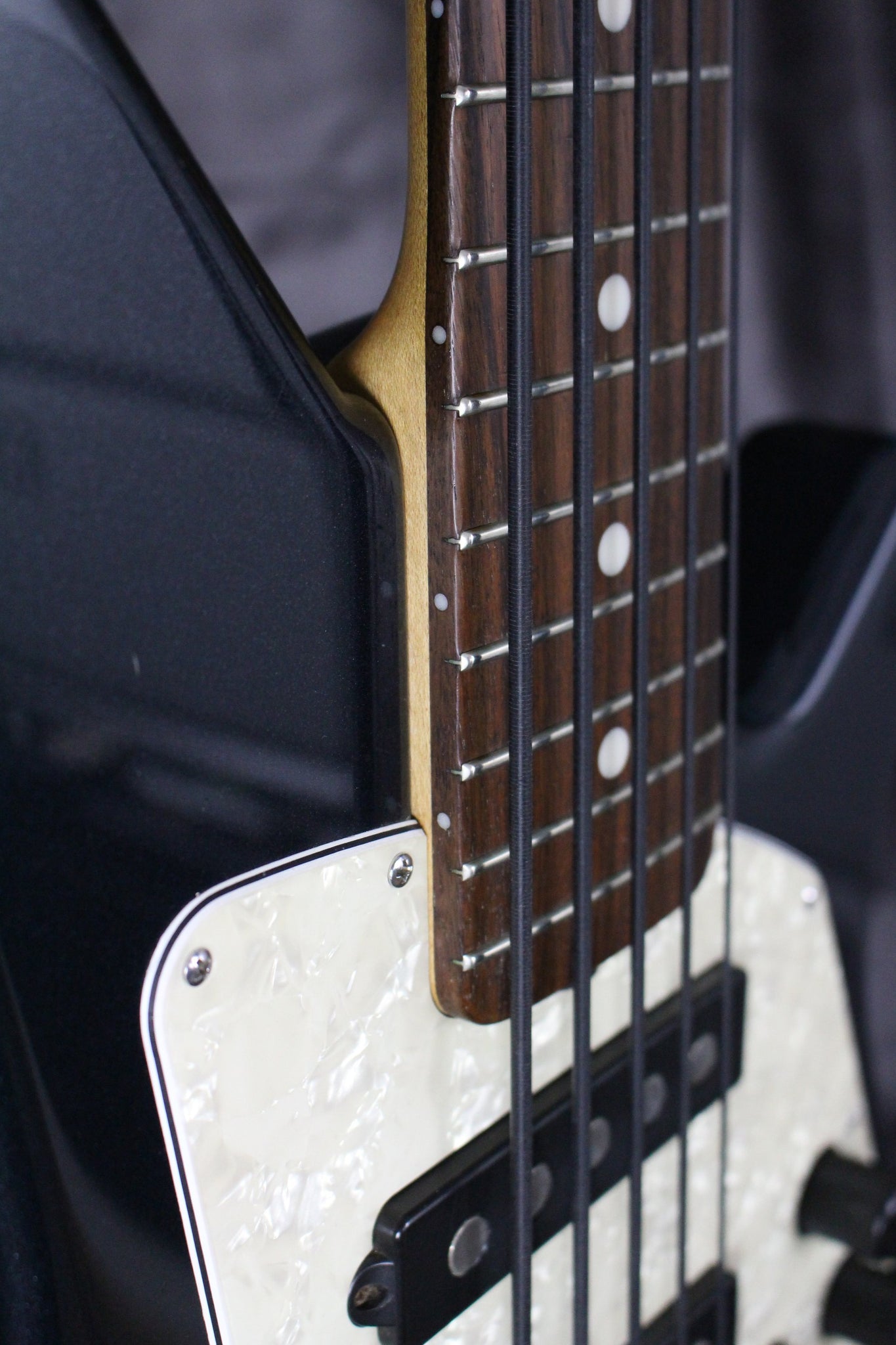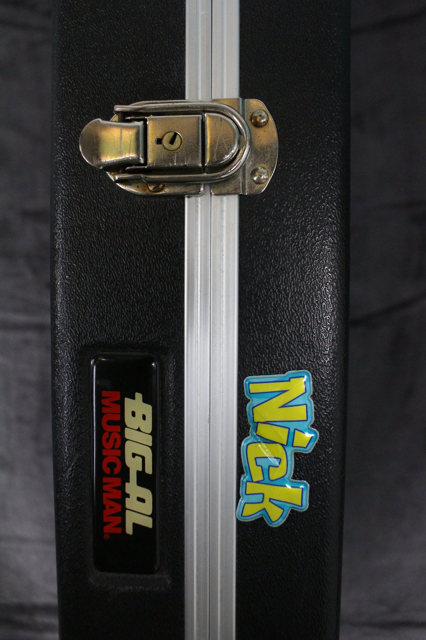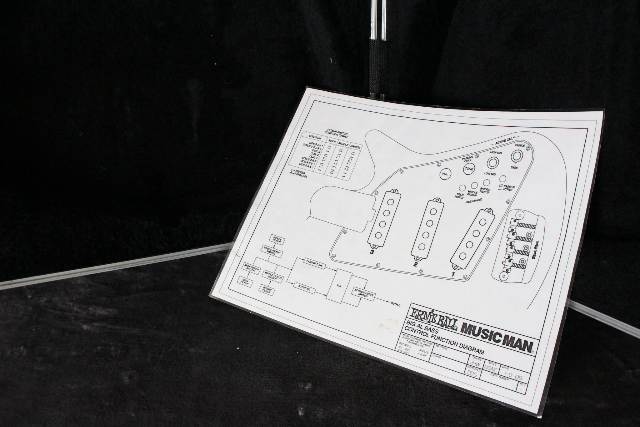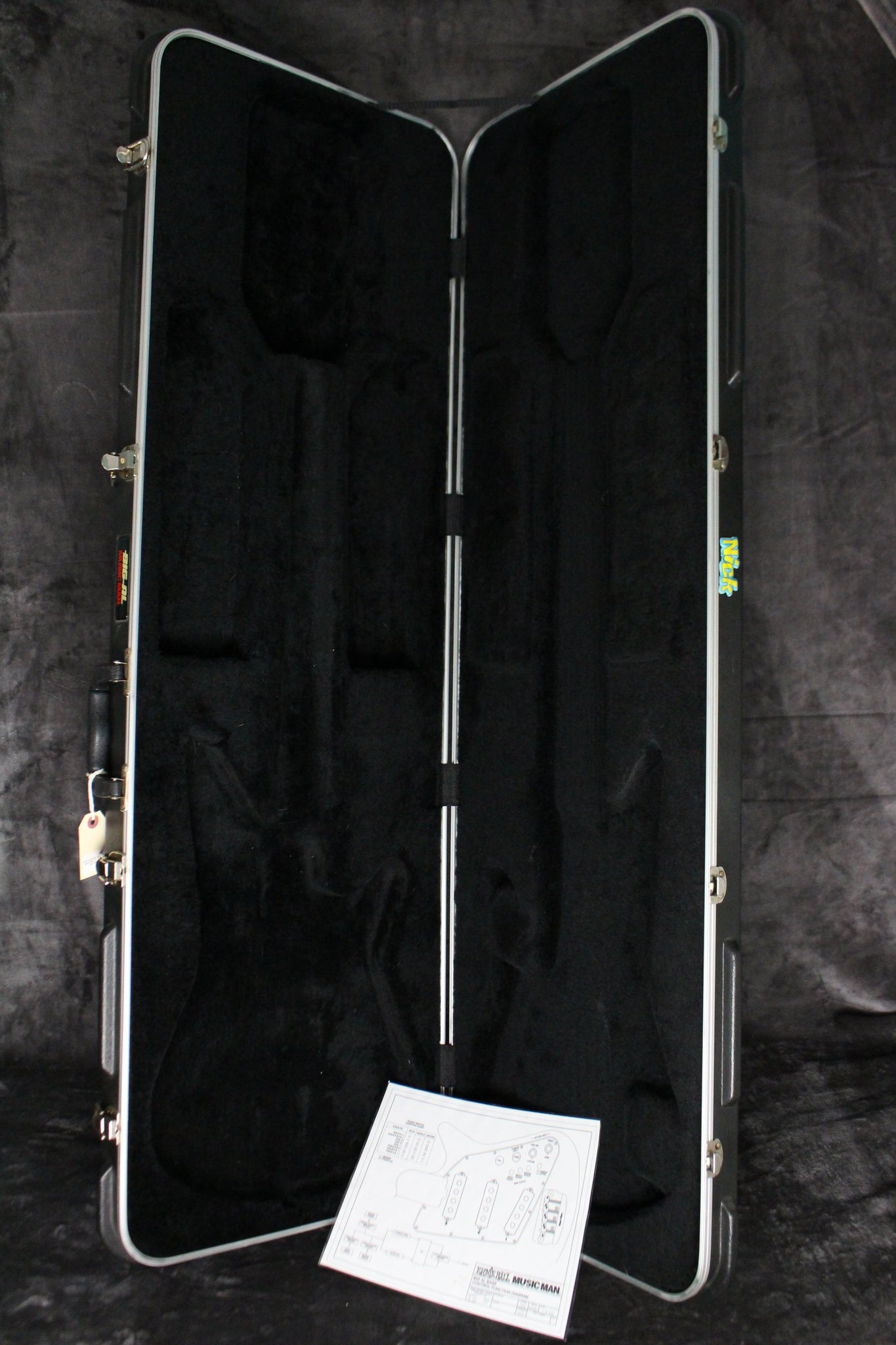 Pickups/Hardware: SSS Musicman active pickups, stock tuning keys, 5 saddle adjustable bridge, Master volume and tone knobs, pickup selector buttons, active/passive switch, compensated nut.