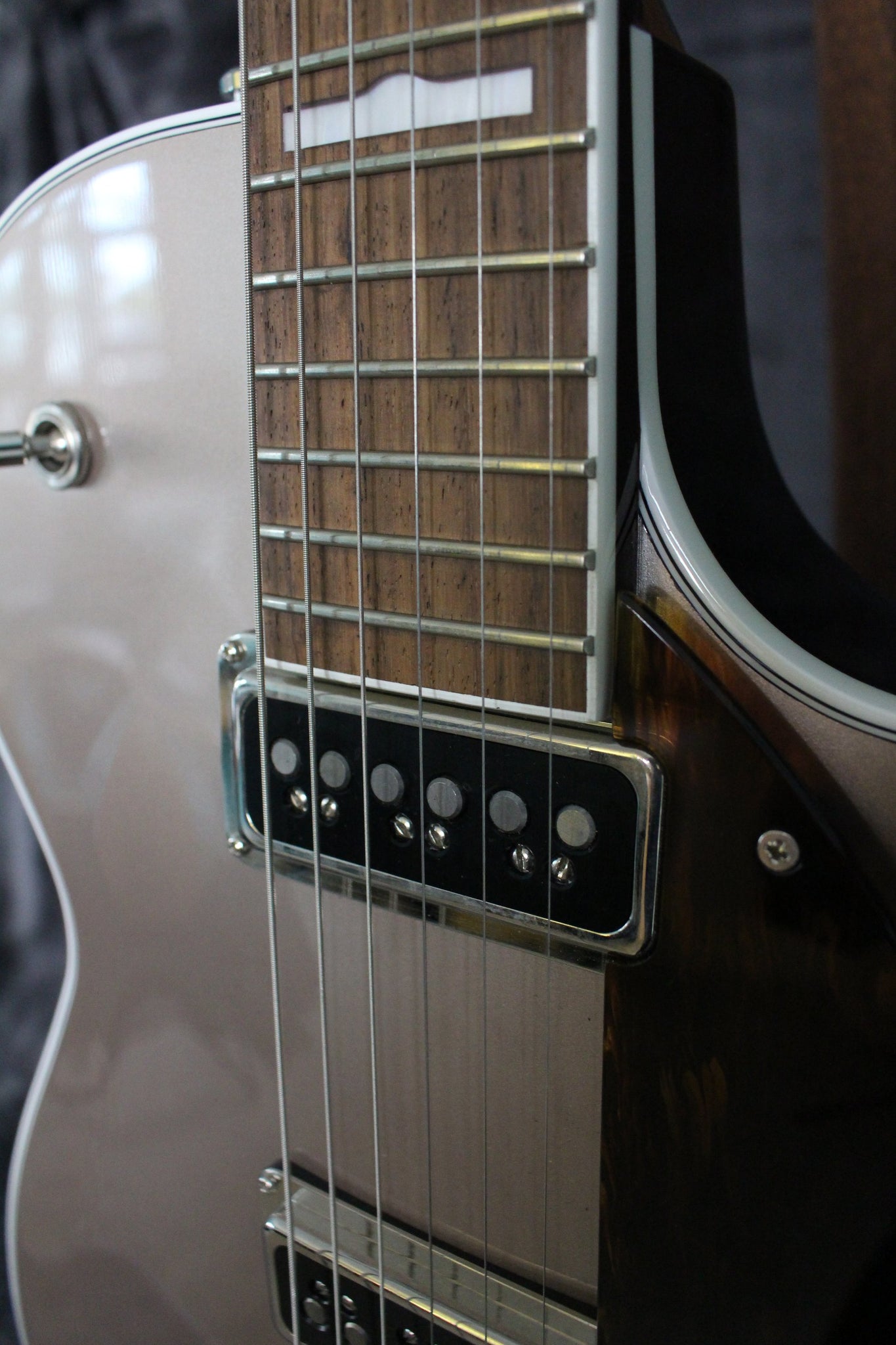 Body: Mahogany, with Maple top in Sahara Metallic finish.