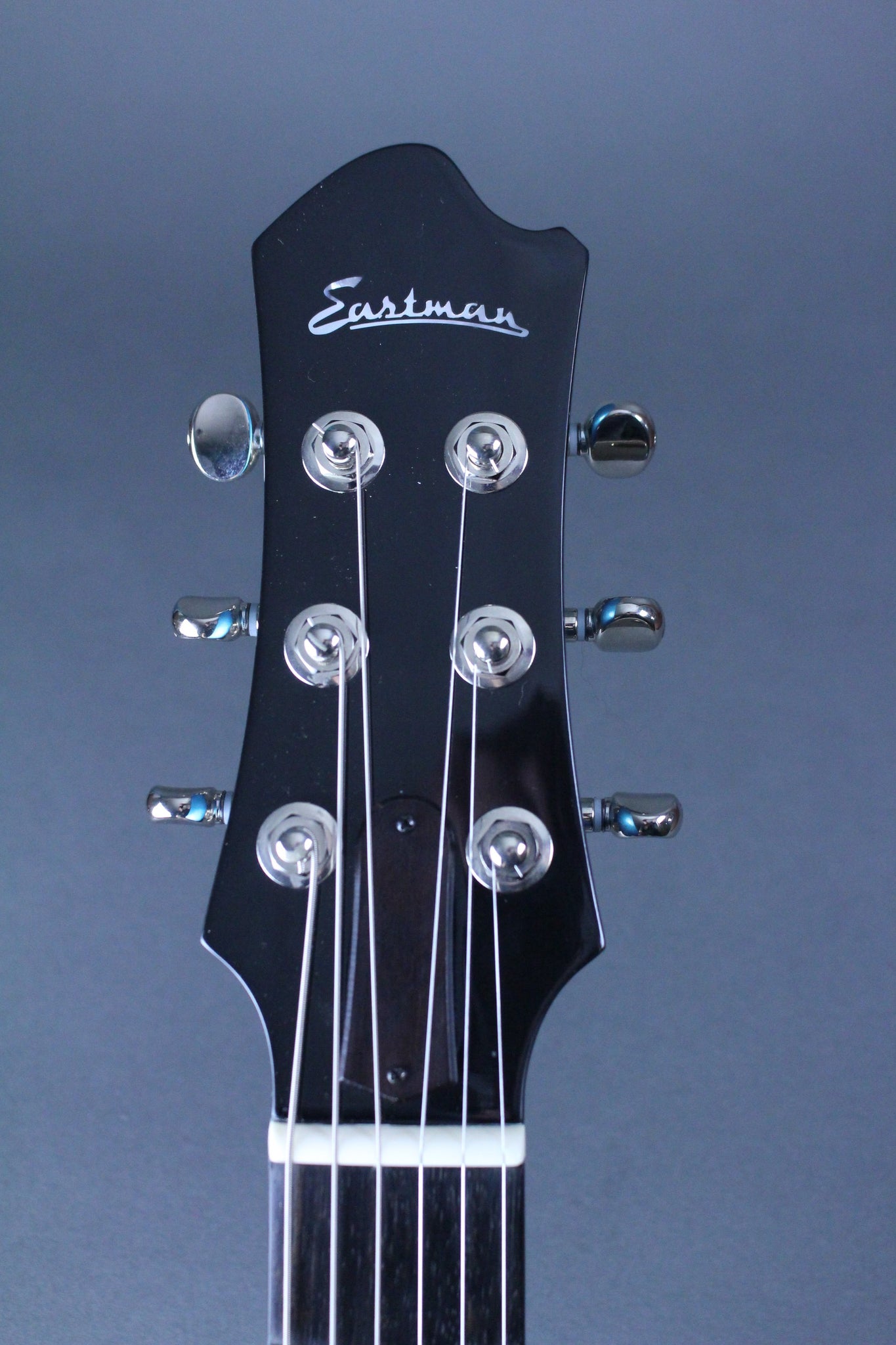 Pickups/Hardware: Seymour Duncan “Radiator” Goild foil P-90 pickups, Eastman locking tuning keys, Goldo Tremolo bridge, volume and tone knobs with 3-way switch, bone nut.