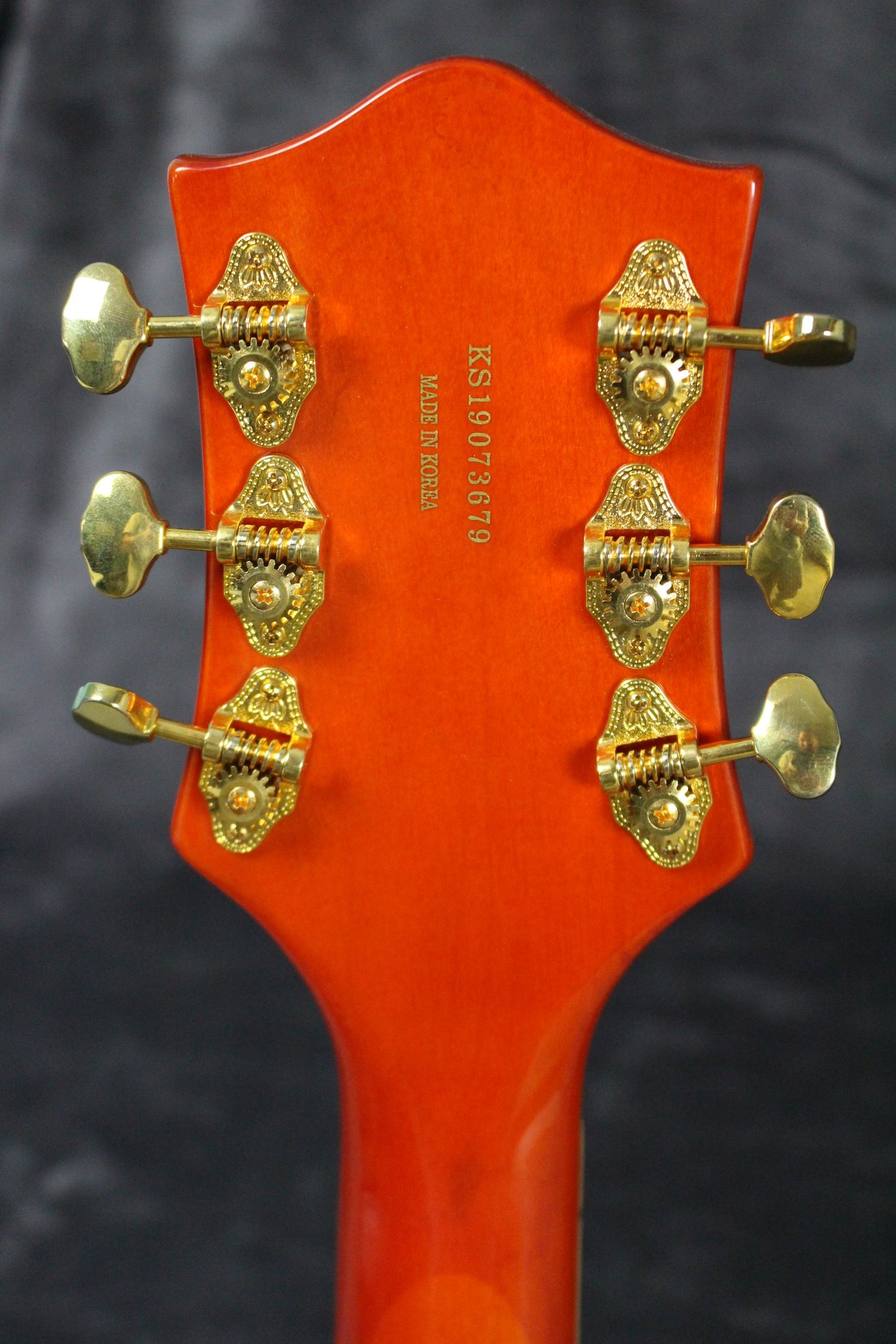 Body: Laminated maple body in an orange gloss finish.