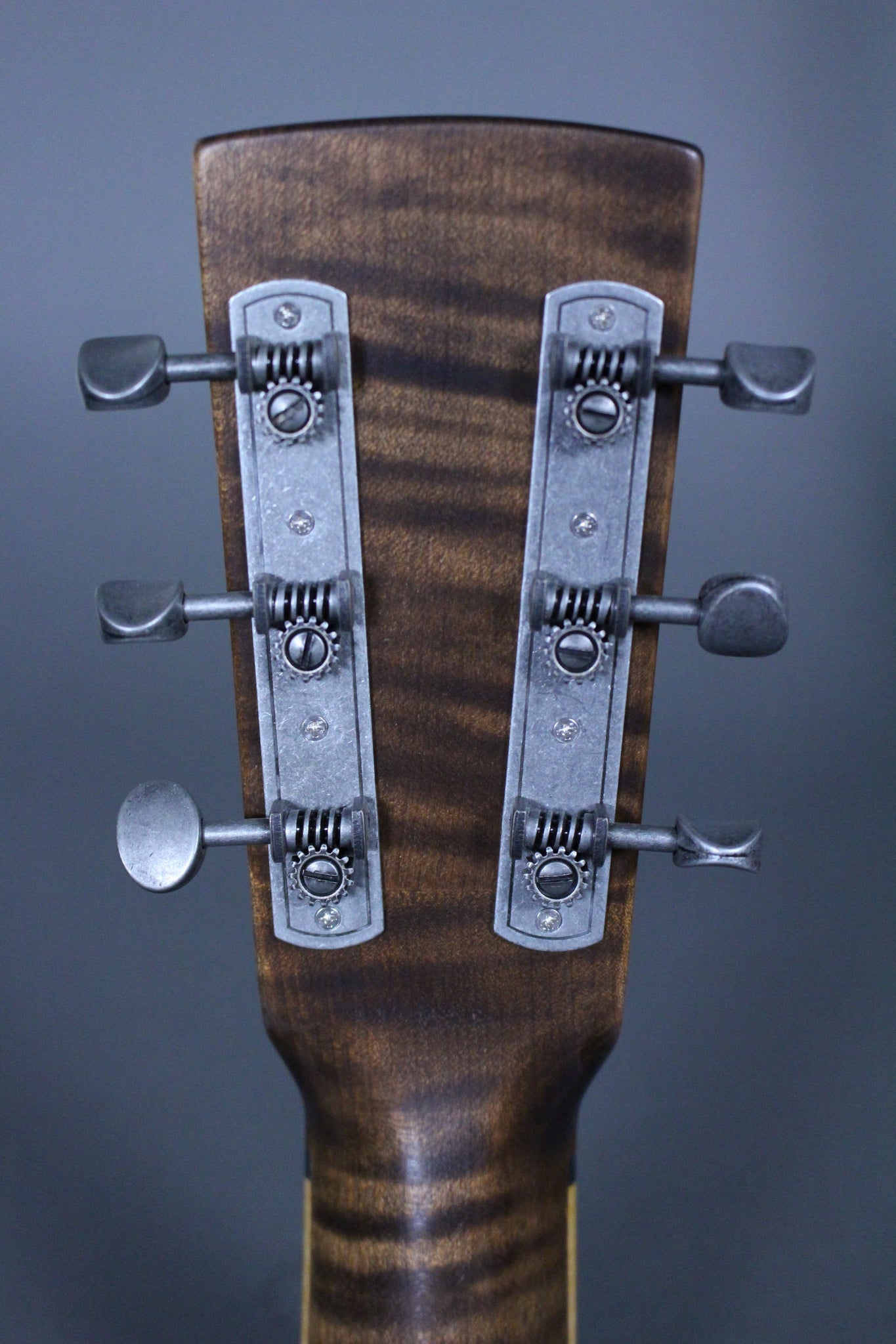 Body: Flame Maple top with a cutaway and a carved back in Dark Brown finish.