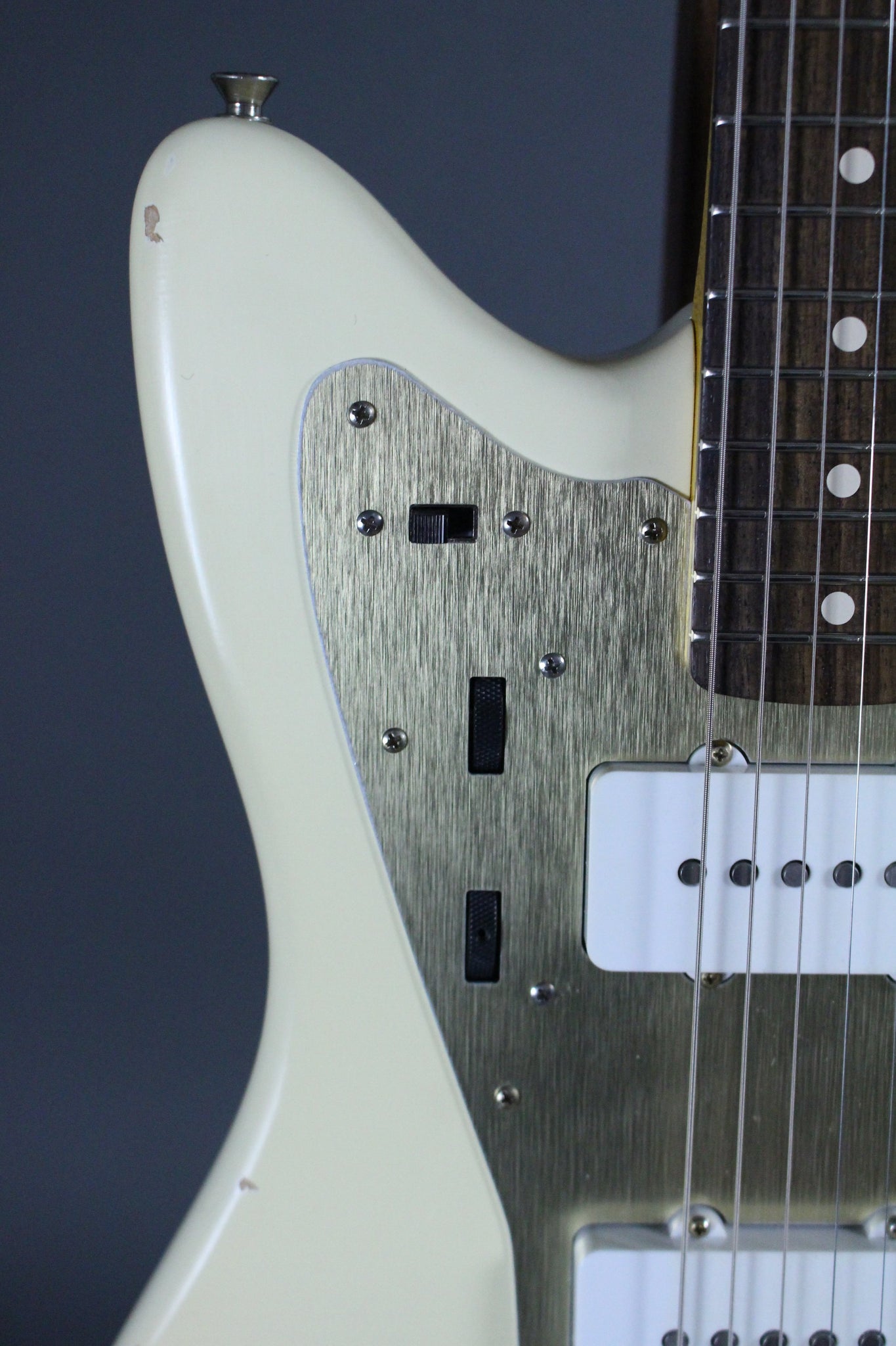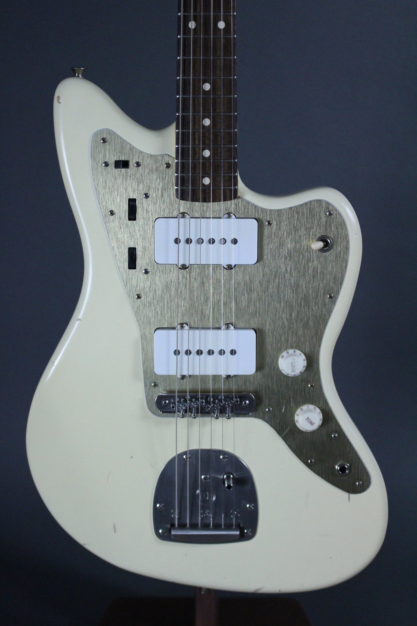 Body: Alder body with nitrocellulose relic Olympic White finish.