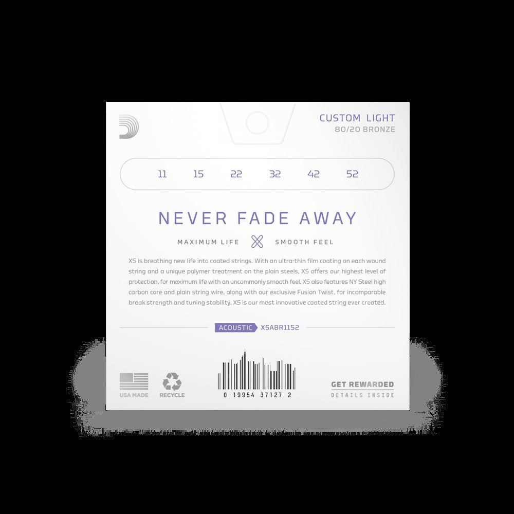 D'Addario XSABR1152 80/20 Bronze Custom Light Coated Acoustic Guitar Strings 11-52