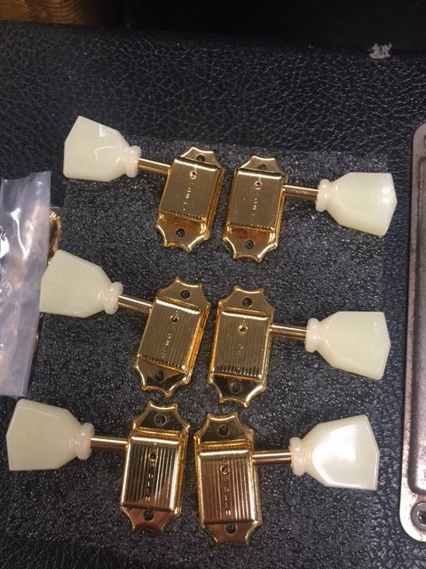 This is a new set of Kluson Deluxe KD-3-GPK Gold tuning keys (3 on a side)
