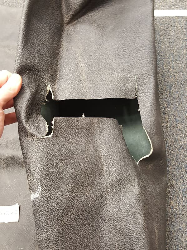 This is a vintage Leather amp cover and its pretty beat up - the handle openings are cut out with no piping ...