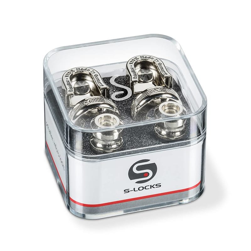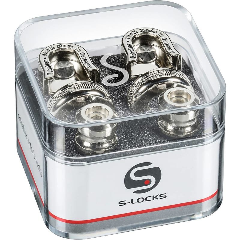 The world's favorite change and lock system for guitar straps. These new revolutionary S-Locks are silent. They feature one-piece hardened steel strap buttons, aesthetic design, perfect handling, an elegant Lock-Wheel and all former hiccups have been tackled! New and unique solid one-piece strap button in hardened steel with self-tapping wood thread. Simply screw it on with an Allen key (size 3 mm/ 1/8"). Hardened steel and more than double thickness of the strap button guarantees maximum security against breakage. Including high-grade felt washers for ultimate protection of guitar's finish