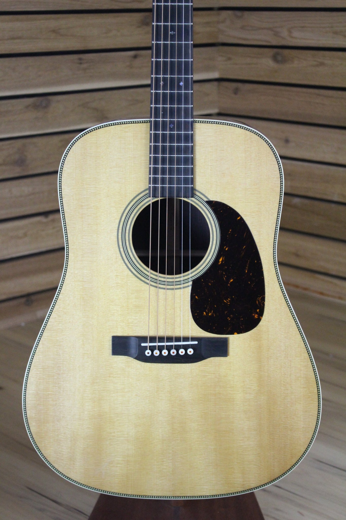 The Martin HD-28 is a legendary acoustic guitar, trusted by generations of players and played by countless icons across genres. Its Dreadnought body size and scalloped bracing delivers the bold, projective tone with strong bass, clear trebles, and rich overtones that has defined acoustic music for nearly a century. Handcrafted with a solid spruce top and solid East Indian rosewood back and sides, the HD-28 offers a resonant, balanced voice for all playing styles. Bold herringbone top inlay and an ebony fingerboard with abalone diamond and square inlays add a vintage-inspired touch. The satin neck, featuring a Golden Era (GE) Modified Low Oval profile, high-performance taper, and 25.4" scale length, ensures effortless playability. Complete with antique white binding, an ebony bridge with bone pins, and nickel open gear tuners, the HD-28 blends timeless craftsmanship with modern versatility. Available in a variety of gloss options, it’s a guitar you can trust to unleash the artist within.