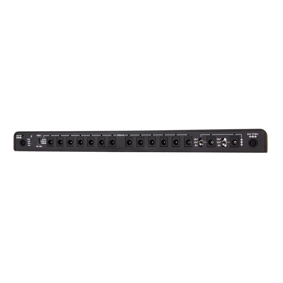 The Canvas Power 15 has 15 isolated power outputs delivering up to 500mA of clean power at 9v. Two of the outlets are variable voltage, letting you switch between 9v, 12v, and 18v for powering high-voltage pedals. It also includes a USB-C port for powering devices like your phone or tablet while you play.What's in the box? Canvas Power Supply:1 x Canvas Power Supply1 x Power Supply Brick with IEC cable(MODEL SPECIFIC NUMBER) x Custom 2.1mm Barrel Cables1 x Flat Pedalboard Mounting Bracket (Canvas Power 5 only)1 x Universal Mounting Bracket (Canvas Power 8, 15, and 22)