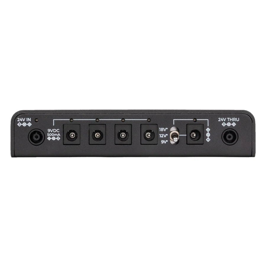 In the words of Walrus Audio: The Canvas Power 5 has 5 isolated power outputs delivering up to 500mA of clean power at 9v. Two of the outlets are variable voltage, letting you switch between 9v, 12v, and 18v for powering high-voltage pedals. It also includes a USB-C port for powering devices like your phone or tablet while you play.