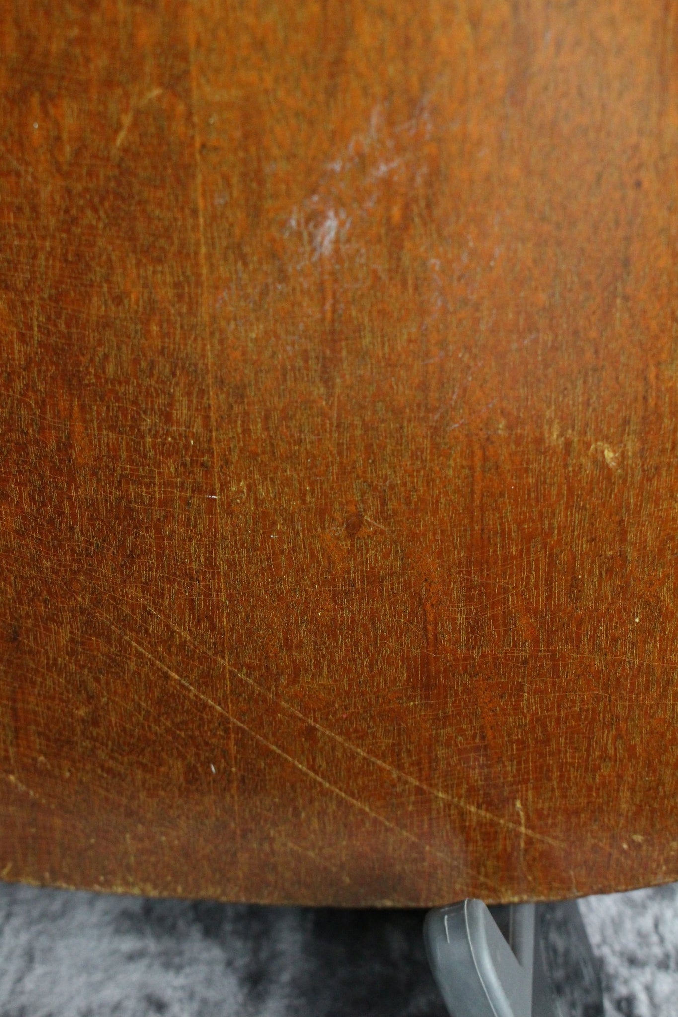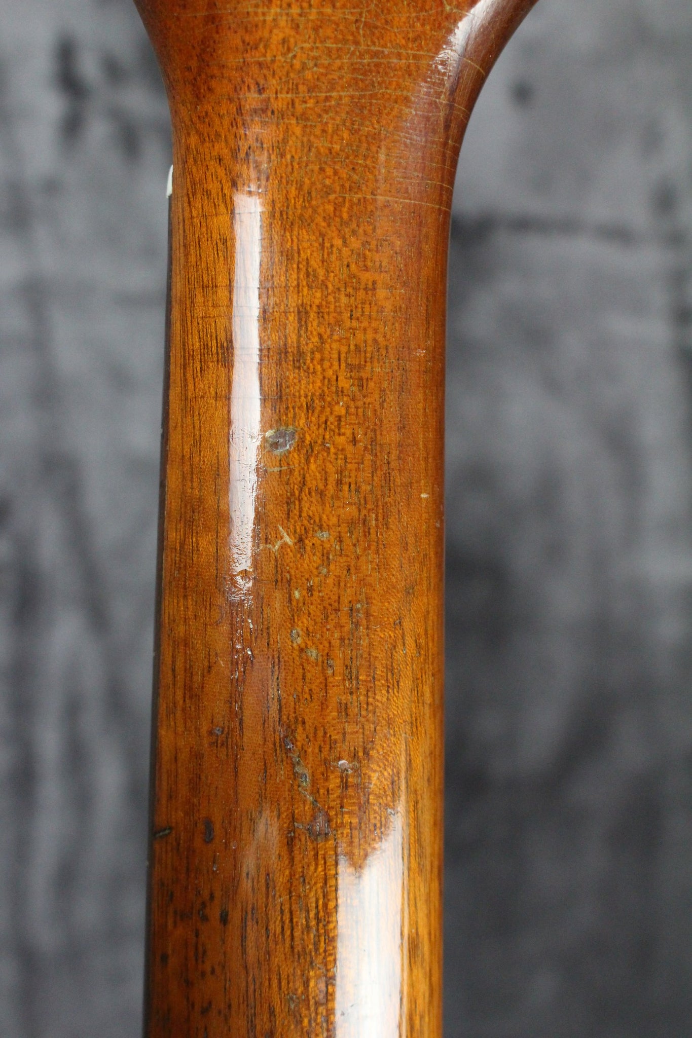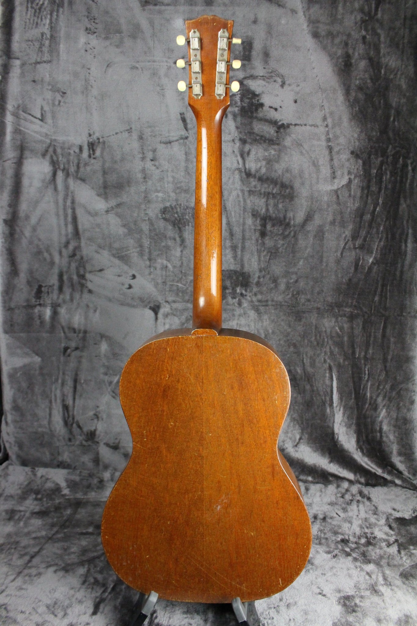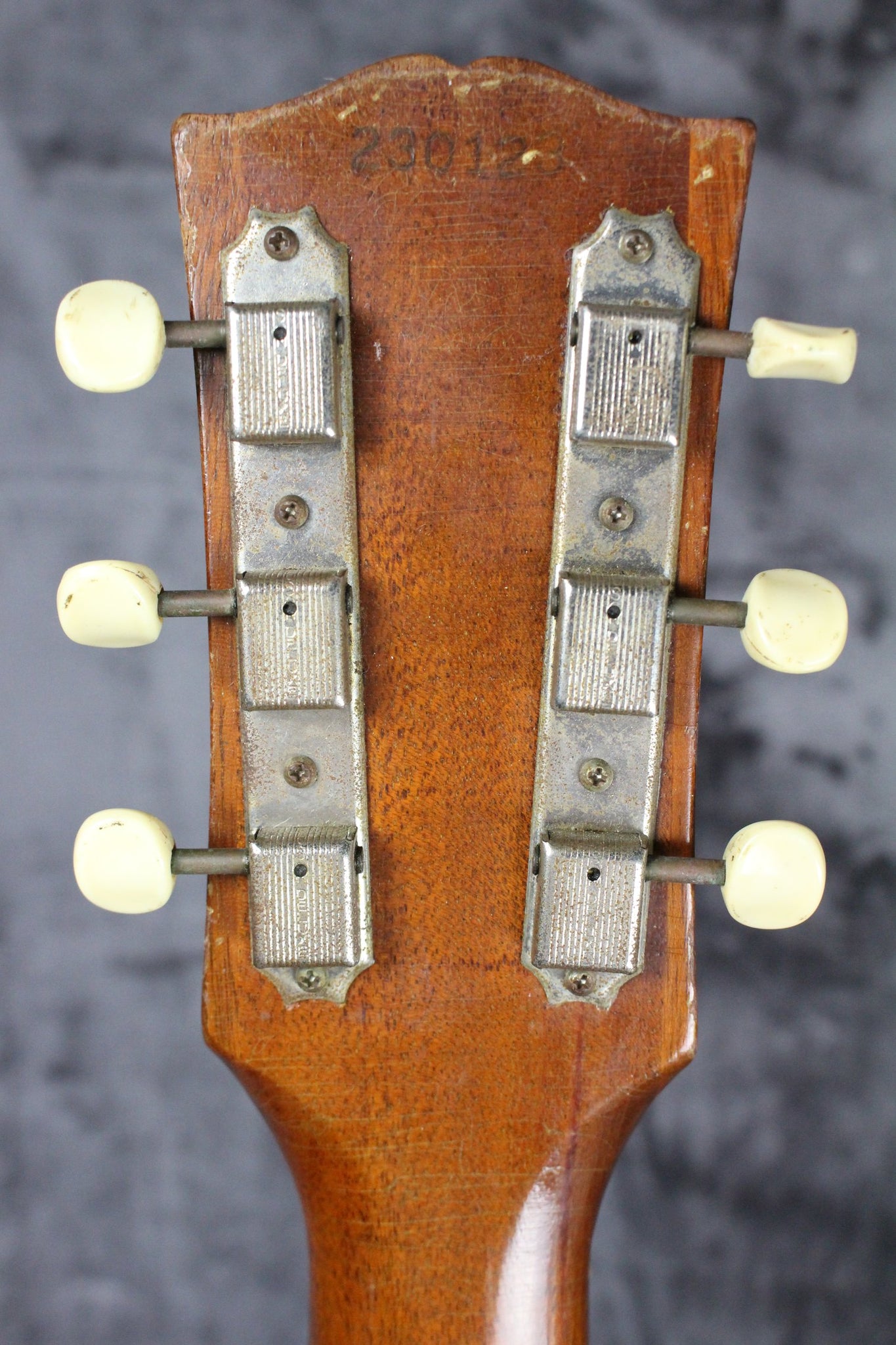 Cosmetics: This guitar has a slight bridge lift. There is noticeable wear on the headstock. It has tons of beautiful finish checking. This guitar has various nicks, dings, and scratches throughout. It appears that someone has refretted this guitar as well. The G string tuning key is slightly bent but still works properly. Overall, this guitar plays very well and sounds great.
