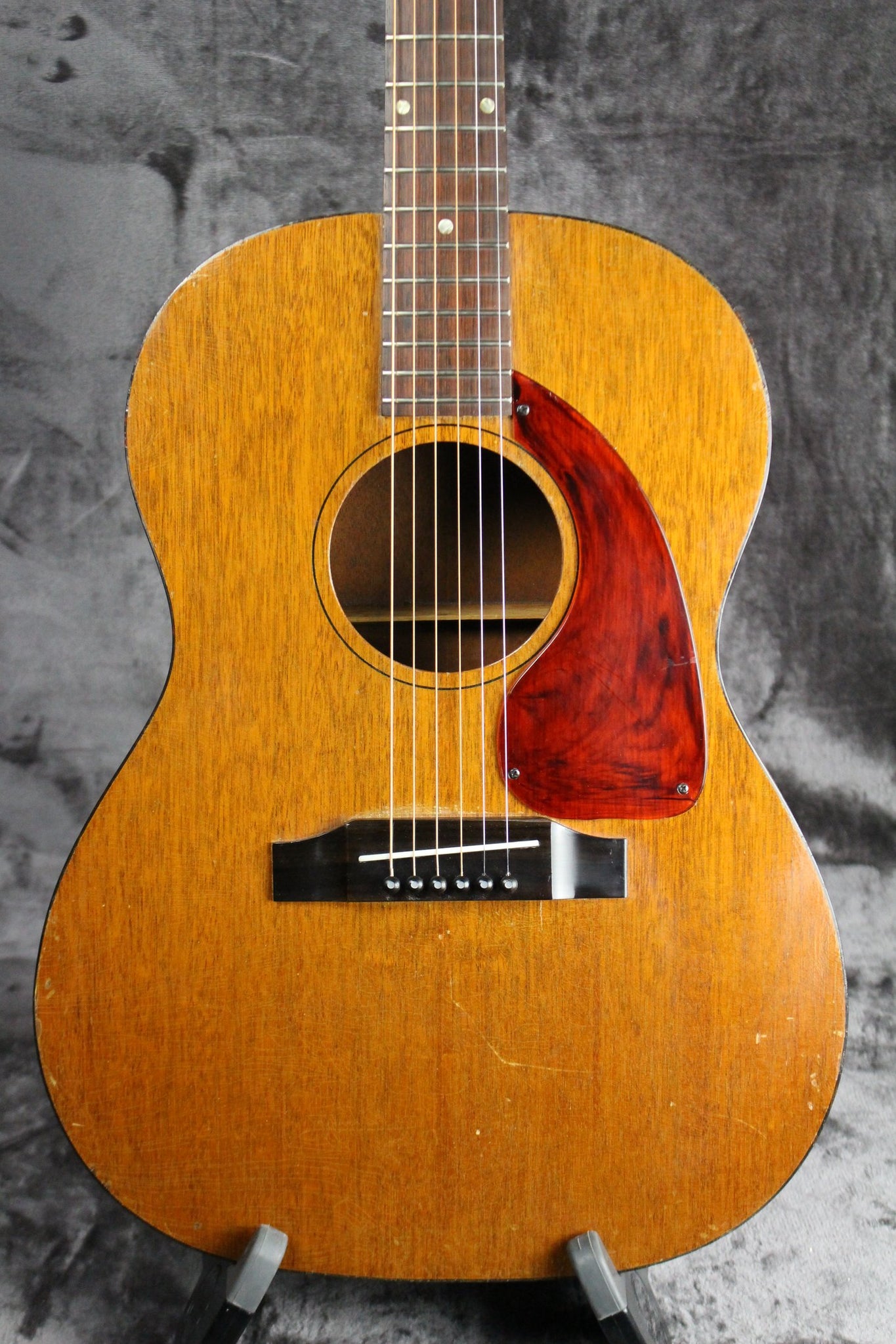 Summary: In late 1958 Gibson introduced the Gibson LG-0, this guitar was a very popular guitar amongst students. It was an overall great sounding guitar and outperformed most guitars in its price range. These early LG-0 models were superior in sound and quality; they were fitted with a Brazilian rosewood bridge. This worked well tonally with the solid Mahogany tops. This LG-0 originally had one of the plastic bridges that were being used from 1962 to around 1968. It has since been replaced with a Rosewood bridge and a bone saddle.